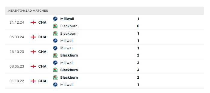 - Kèo tỷ số H2 Blackburn Rovers vs Millwall: 0-0
