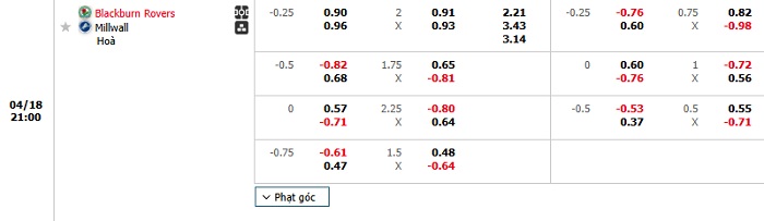 Soi kèo châu Á, kèo Blackburn Rovers vs Millwall