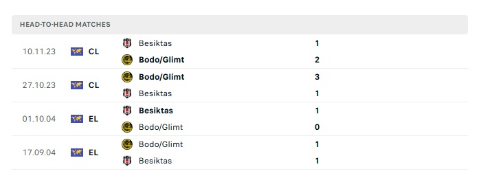 Lịch sử đối đầu Bodo Glimt vs Besiktas