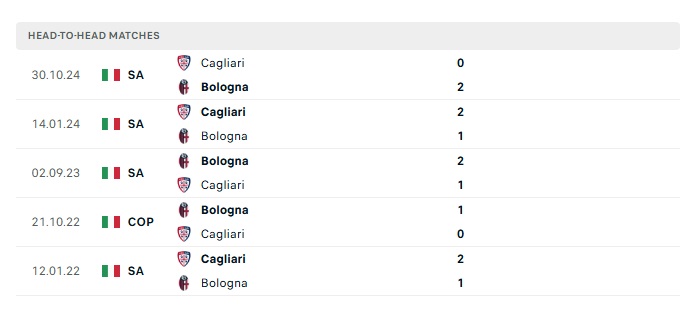 Đang thi đấu tốt và ổn định hơn so với khoảng thời gian đầu mùa, Bologna ngày hôm nay tự tin có cho mình 3 điểm trọn vẹn trước Cagliari. Theo ghi nhận, Bologna hiện tại đang có mặt ở vị trí thứ 8 trên BXH với 41 điểm. Trong khi đó thì Cagliari đang chỉ có được vị trí thứ 15 trên BXH với 25 điểm. Như vậy, sẽ không khó để Bologna ngày hôm nay có được ít nhất là 1 chiến thắng tối thiểu trước đối thủ.
