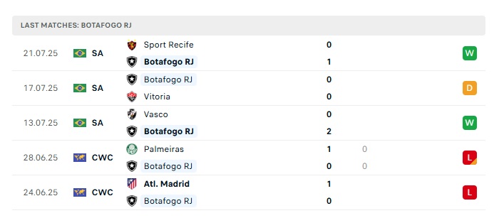 • Phong độ gần đây Botafogo