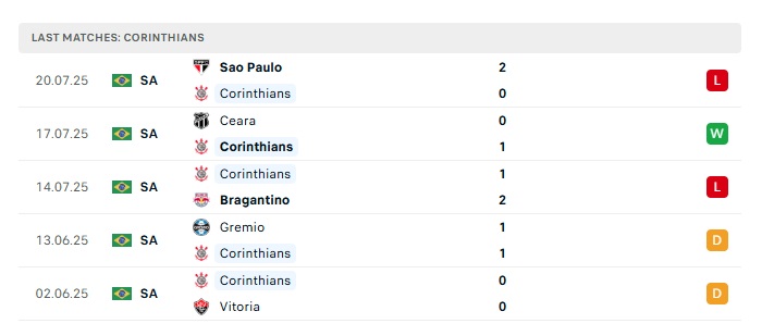• Phong độ gần đây Corinthians