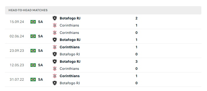 Lịch sử đối đầu Botafogo vs Corinthians