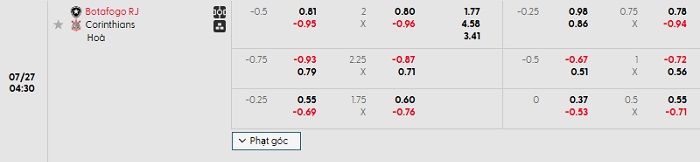Soi kèo châu Á, kèo Botafogo vs Corinthians