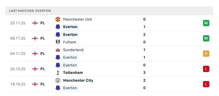 - Phong độ gần đây Everton