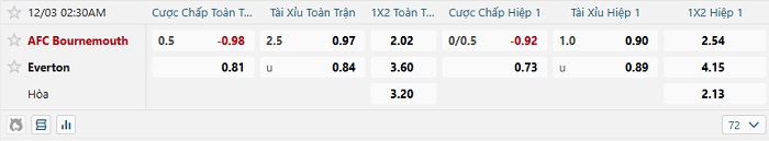 Soi kèo châu Á, kèo Bournemouth vs Everton