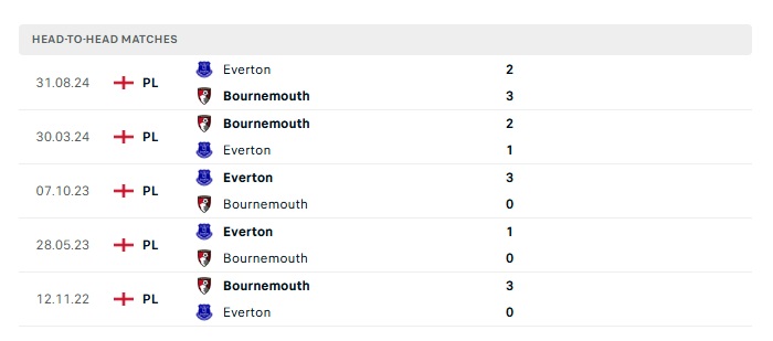 - Kèo tỷ số H2 Bournemouth vs Everton: 3-0