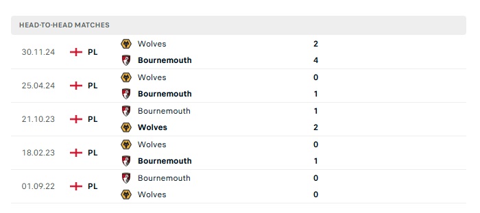• Kèo tỷ số H2 Bournemouth vs Wolves: 2-0