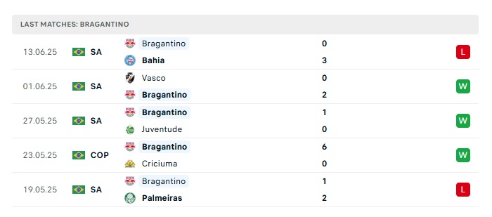 - Phong độ gần đây Bragantino