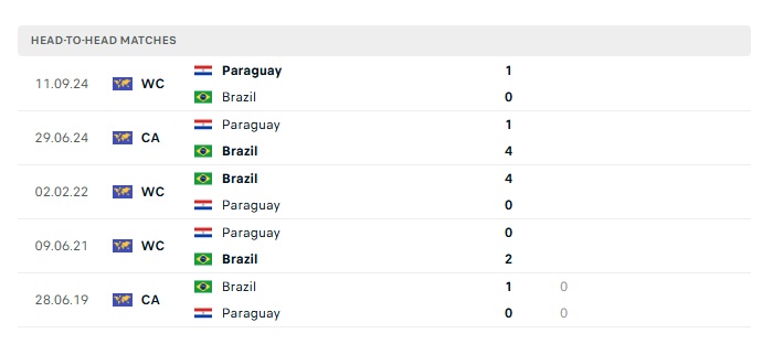 - Kèo tỷ số H2 Brazil vs Paraguay: 1-0