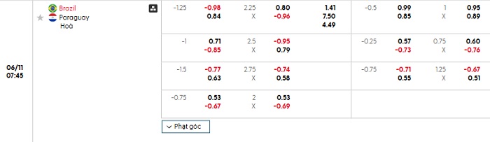 Soi kèo châu Á, kèo Brazil vs Paraguay