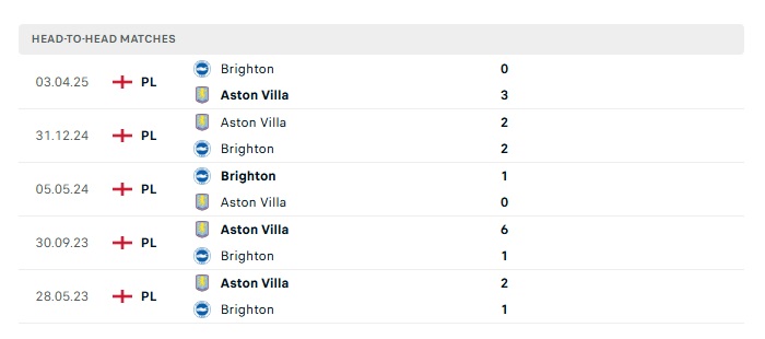 Bảng kèo nhà cái Brighton vs Aston Villa