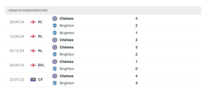 Lịch sử đối đầu Brighton vs Chelsea