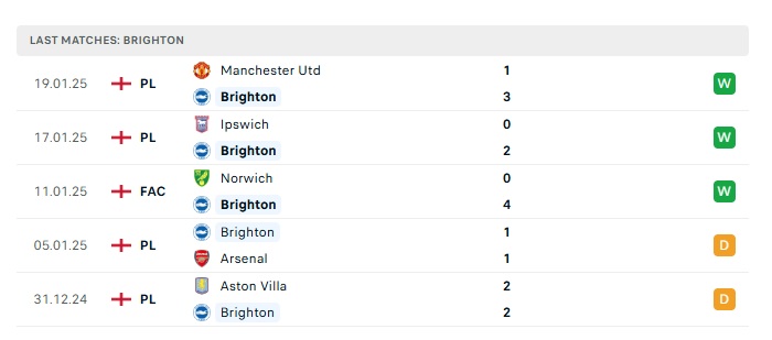 Với phong độ đang rất tốt trong thời gian qua, Brighton ngày hôm nay sẽ có cho mình 1 chiến thắng áp đảo trước Everton. Nên biết rằng Brighton đang có mặt ở vị trí thứ 9 trên BXH với 34 điểm sau 22 vòng. Trong khi đó thì đội khách Everton lúc này chỉ có được vị trí thứ 16 trên BXH với 20 điểm. Rõ ràng, áp lực mà đội chủ nhà tạo ra cho đối thủ lúc này đang là vô cùng lớn.