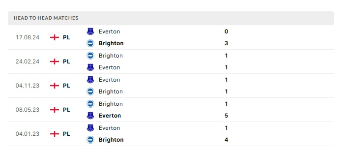 • Kèo tỷ số H2 Brighton vs Everton: 2-1
