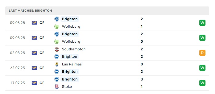• Phong độ gần đây Brighton