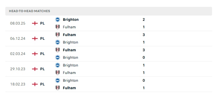 Lịch sử đối đầu Brighton vs Fulham