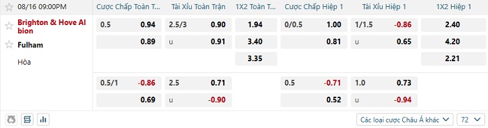 Soi kèo châu Á, kèo Brighton vs Fulham