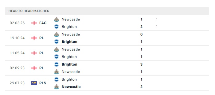 - Kèo tỷ số H2 Brighton vs Newcastle: 1-3