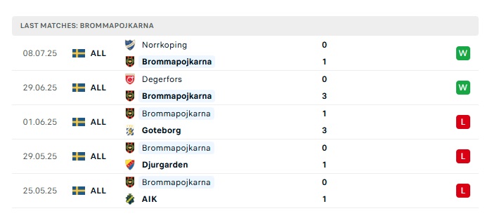 Tính trong thời gian vừa qua, Brommapojkarna cũng có phong độ không nhỉnh hơn quá nhiều so với Oster. Cụ thể chủ nhà Brommapojkarna chỉ thắng 2, thua 3 trong 5 trận đấu gần đây nhất của mình. Trong khi đó thì Oster lúc này đang có được 1 chiến thắng, 3 hòa và chỉ thua 1 trong 5 trận gần nhất. Do đó, đội chủ nhà dù tự tin thì cũng chỉ có thể thắng tối thiểu trong ngày thi đấu hôm nay.