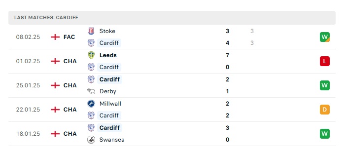 • Phong độ gần đây Cardiff City