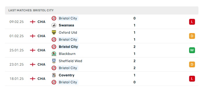 • Phong độ gần đây  Bristol City