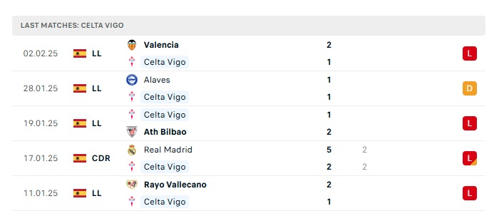 • Phong độ gần đây Celta Vigo