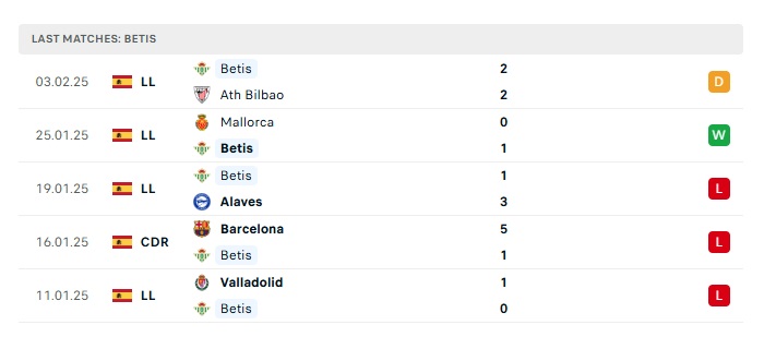 • Phong độ gần đây  Real Betis