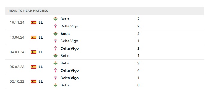 Lịch sử đối đầu Celta Vigo vs Real Betis