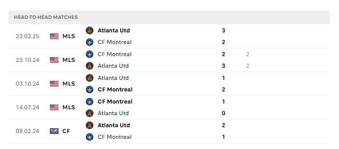Lịch sử đối đầu CF Montreal vs Atlanta United