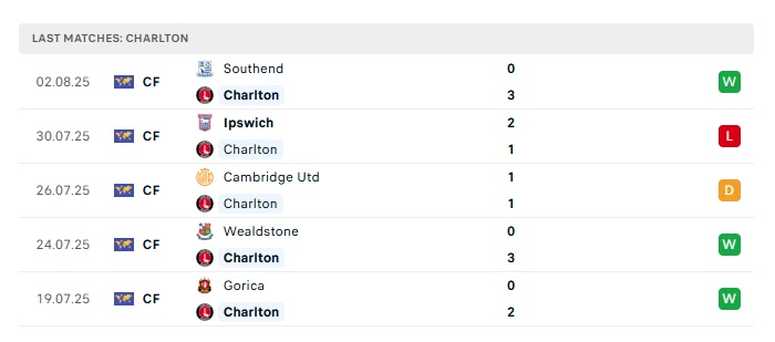 - Phong độ gần đây Charlton Athletic