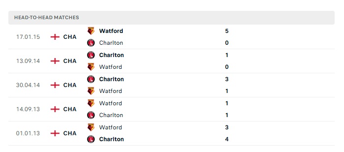 Lịch sử đối đầu Charlton Athletic vs Watford