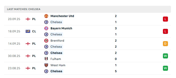 • Phong độ gần đây Chelsea