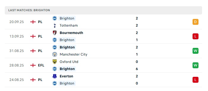 • Phong độ gần đây Brighton