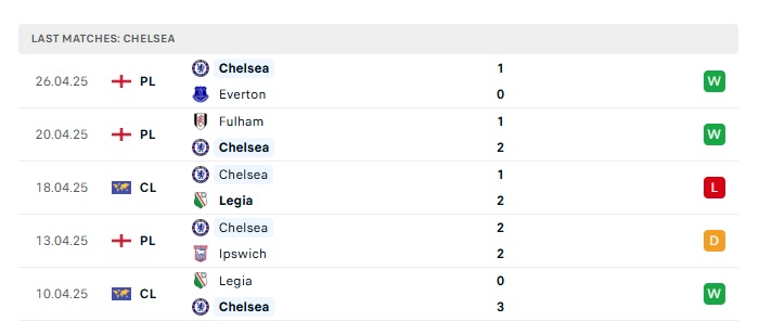 • Phong độ gần đây Chelsea