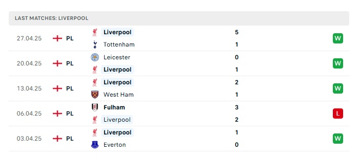 • Phong độ gần đây Liverpool