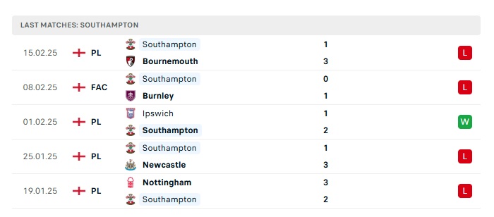 - Phong độ gần đây Southampton