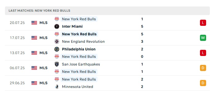 - Phong độ gần đây New York RB