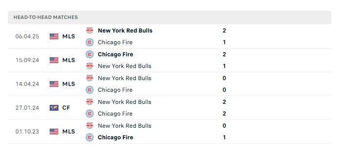 Lịch sử đối đầu Chicago Fire vs New York RB
