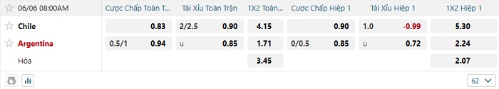 - Kèo tỷ số H1 Chile vs Argentina: 0-1