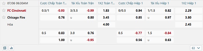 Soi kèo châu Á, kèo Cincinnati vs Chicago Fire