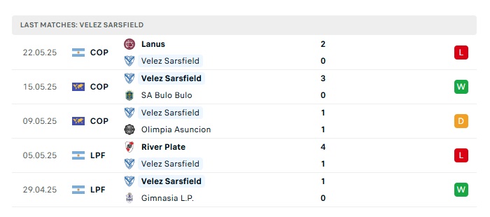 Phong độ gần đây Club Atletico Penarol vs Velez Sarsfield
