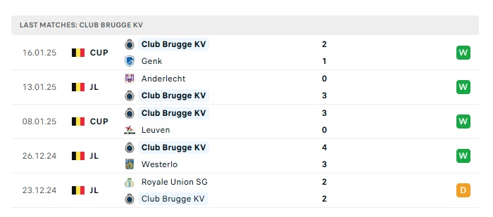 - Phong độ gần đây Club Brugge
