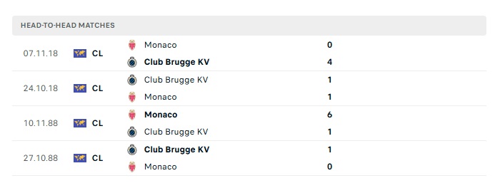 - Kèo tỷ số H2 Club Brugge vs Monaco: 1-1