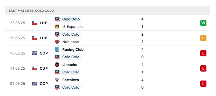Phong độ gần đây Colo Colo  vs Bucaramanga