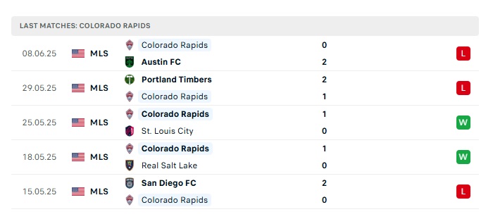 - Phong độ gần đây Colorado Rapids