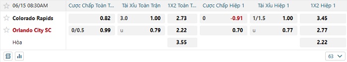 Bảng tỷ lệ kèo bóng đá Colorado Rapids vs Orlando City