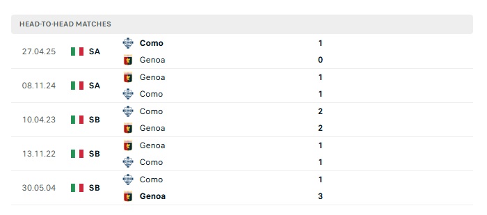Theo ghi nhận từ các chuyên gia, phong độ thi đấu trong thời gian qua của đội khách Genoa hoàn toàn thua kém so với Como. Tính trong 5 trận đấu gần nhất, Como đã có cho mình 3 chiến thắng và chỉ thua 2. Trong khi đó thì Genoa chỉ thắng 1 trong 5 trận gần nhất, còn lại là 3 hòa và 1 thua. Do đó, khả năng Como có 1 hoặc 3 điểm trong ngày thi đấu hôm nay đang là tương đối cao.
