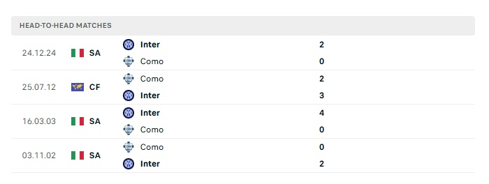 Lịch sử đối đầu Como vs Inter Milan