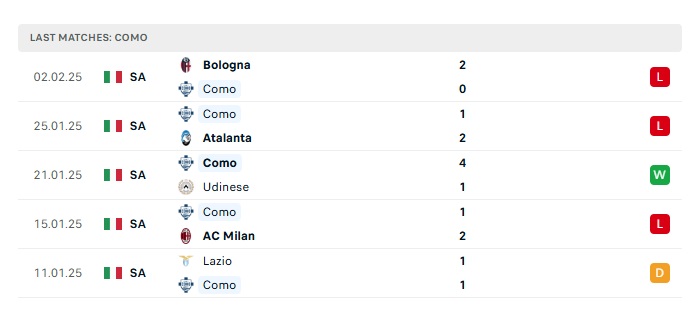 Theo ghi nhận, phong độ thi đấu trong thời gian qua của Juventus dù không tốt nhưng vẫn vượt xa đối thủ Como. Tính trong 5 trận đấu gần nhất của đội chủ nhà, họ chỉ có được đúng 1 chiến thắng, 1 hòa và thua 3. Trong khi đó thì Juventus đang có 2 thắng, 3 hòa và chỉ thua 2 trong 7 trận gần nhất. Như vậy, tuy sẽ gặp khó khăn nhưng đội khách vẫn tự tin có được ít nhất là 1 chiến thắng tối thiểu.